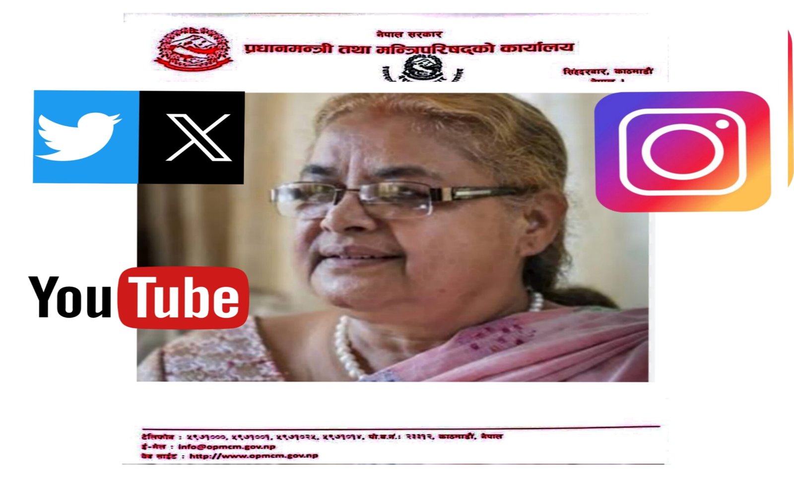 प्रधानमन्त्री तथा मन्त्रिपरिषद्को कार्यालयले आज एक प्रेस बिग्यप्ती जारी गर्दै प्रधानमन्त्री सुसिला कार्किको आधिकारिक खाता एक्समा @pmsushilakarki, फेसबुकमा PM Sushila Karki र इन्स्टाग्राममा pm.sushila.karki नामको खाता प्रधानमन्त्री कार्कीको आधिकारिक खाता रहेको जनाएको छ।