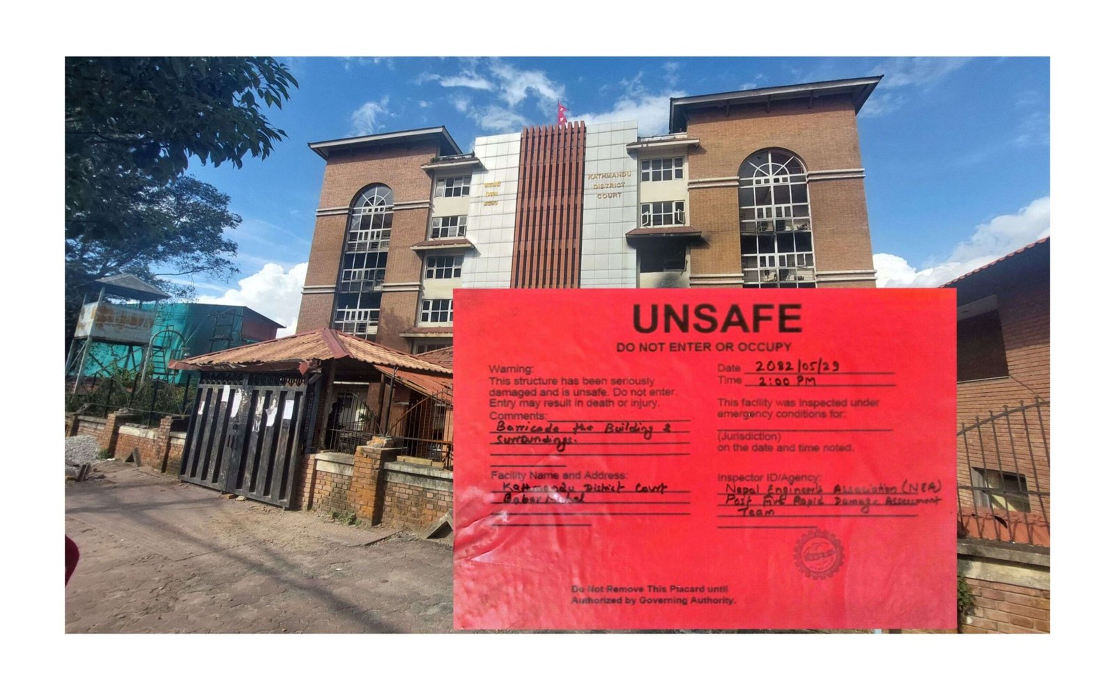 अदालतको भुईतलामा भएको अभिलेखका कागजपत्र र पुराना सवारी साधनमा आगजनीको कारण भवनको भुईतला र पिल्लरमा आगोले गम्भीर क्षेती पुर्याएको कारण तत्काललाई अदालतको भवनमा बस्न असुरक्षित रहेको भन्दै भवन बिभागका प्राविधिक टोलिले खतराको चिन्ह भएको रातो स्टीकर अदालतको भित्तामा टासिदिएका छन् ।