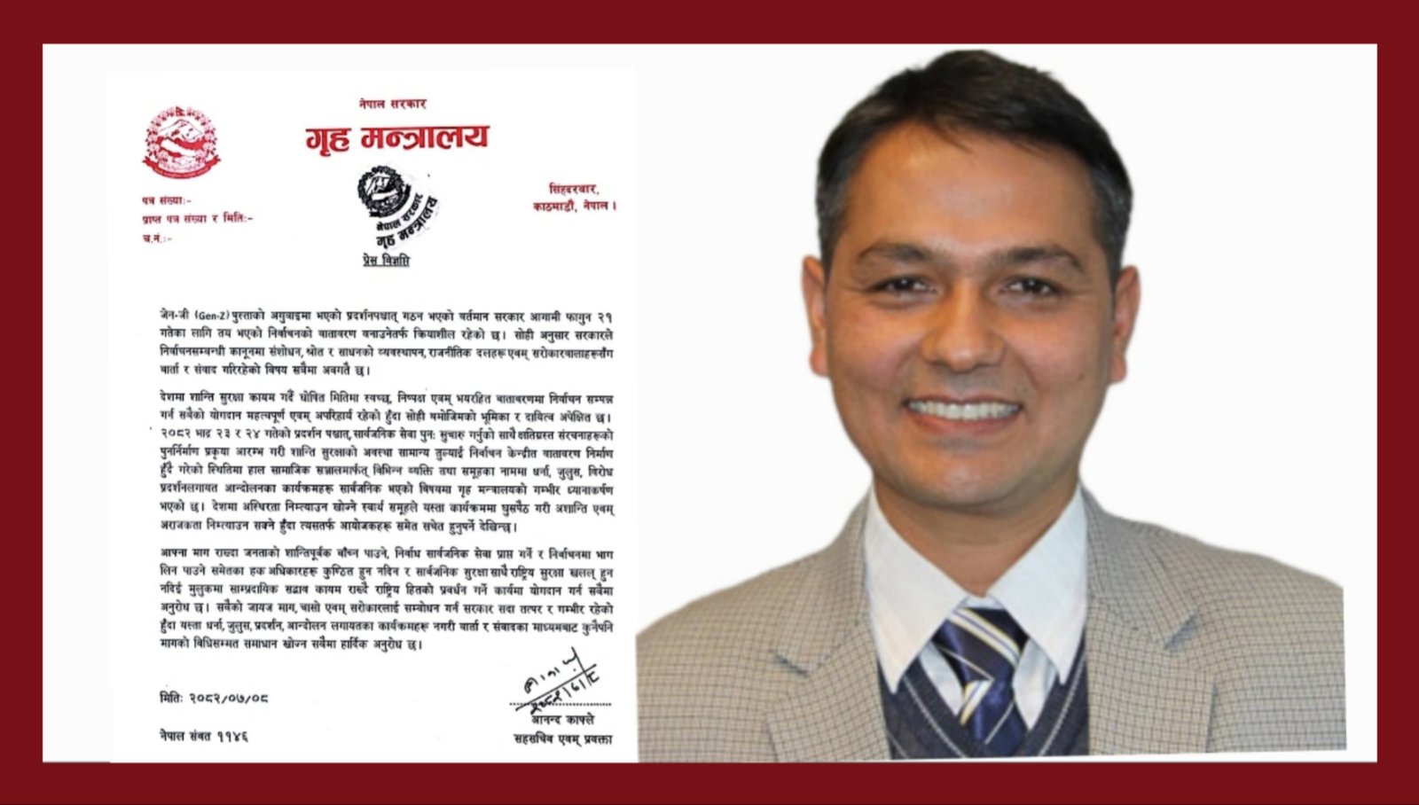 २०८२ भाद्र २३ र २४ गतेको प्रदर्शन पश्चात्, सार्वजनिक सेवा पुनः सुचारु गर्नुको साथै क्षतिग्रस्त संरचनाहरूको पुनर्निर्माण प्रकृया आरम्भ गरी शान्ति सुरक्षाको अवस्था सामान्य तुल्याई निर्वाचन केन्द्रीत वातावरण निर्माण हुँदै गरेको स्थितिमा हाल सामाजिक सञ्जालमार्फत् विभिन्न व्यक्ति तथा समूहका नाममा धर्ना, जुलुस, विरोध प्रदर्शनलगायत आन्दोलनका कार्यक्रमहरू सार्वजनिक भएको विषयमा गृह मन्त्रालयको गम्भीर ध्यानाकर्षण भएको मन्त्रालयले जनाएको छ् ।