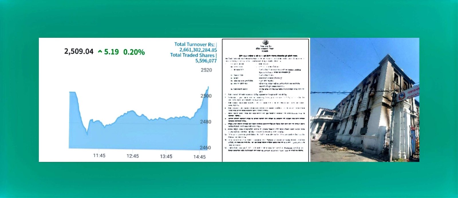 २०८२ कात्तिक ९ नेपाल । सेयर बजार परिसुचक नेप्से ५.१९ अंकले बढेर २५०९.०४ विन्दुमा पुगेर बन्द भएको छ् । आज दुई अर्ब रुपैयाँ भन्दा बढीको सेयर किनबेच भएको छ ।कारोबार रकम भने घटेको छ् ।