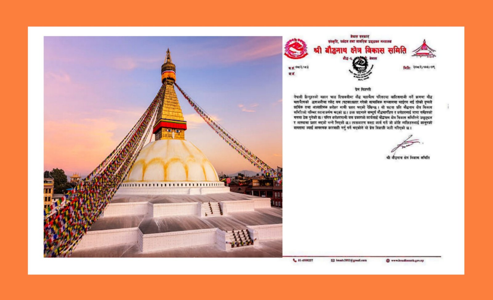 बौद्धनाथ क्षेत्र विकास समितिले जारी गरेको प्रेस बिज्ञप्तिमा भनिएको छ: सो घटना प्रति बौद्धनाथ क्षेत्र विकास समितिको गम्भिर ध्यानाकर्षण भएको छ। उक्त घटनाले सम्पूर्ण बौद्धमार्गीहरु र धरोहरलाई माया गर्नेहरुको मनमा ठेस पुगेको छ। पवित्र धरोहरमाथी यस प्रकारको कार्यलाई बौद्धनाथ क्षेत्र विकास समितिले उछृङ्खल र आस्थामा प्रहार भएको भन्ने लिएको छ। त्यसकारण यस्ता कार्य गर्ने जो कोहि व्यक्तिहरुलाई कानुनको दायरामा ल्याई आवश्यक कारवाही गर्नु पर्ने बौद्धनाथ क्षेत्र विकास समितिले प्रेस बिज्ञप्ति जारी गर्दै माग गरेको छ् ।