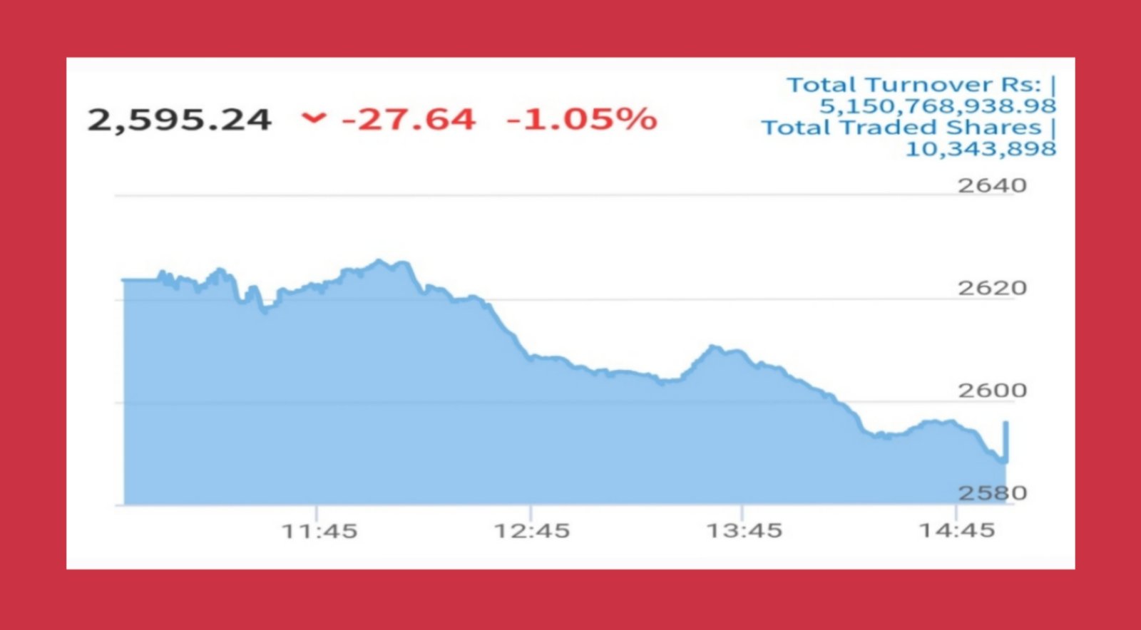 २०८२ कात्तिक १८ नेपाल । सेयर बजार परिसूचक नेप्से २७.६४ अंकले घटेर २५९५.२४ विन्दुमा कायम भएको छ । ५ अर्ब रुपैयाँ बढेको सेयर किनबेच भएका छन् । समग्रमा सेयर बजारमा सूचीकृत सबै समूहका परिसूचक घटेका छन् ।