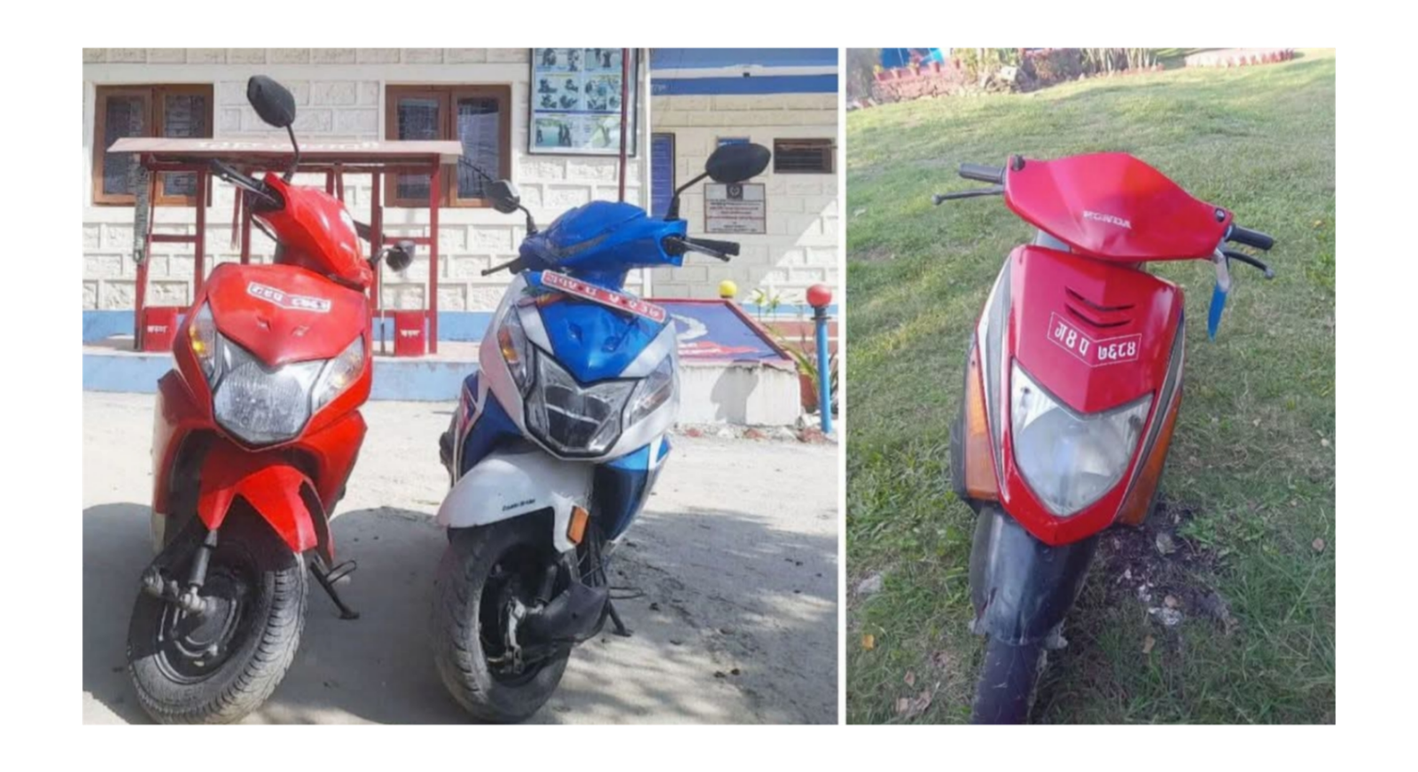 २०८२ कात्तिक २० नेपाल । कास्की प्रहरी द्वारा विभिन्न मिति र स्थानबाट चोरी भएका मोटरसाईकल तथा स्कुटरहरु खोजतलास तथा अनुसन्धान गर्ने क्रममा जिल्ला प्रहरी कार्यालय कास्की मातहत ईलाका प्रहरी कार्यालय शिशुवा कास्कीबाट खटिएको प्रहरी टोलिले चोरी भएका ग ९ प ८७६१ नं. को स्कुटर र ग १५ प ५२३७ नं. को स्कुटर सहित चोरीमा संलग्न निम्न ४ जना अभियुक्तहरु र वडा प्रहरी कार्यालय रामबजार कास्कीबाट खटिई गएको प्रहरी टोलिले ग ४ प ७६८४ नं. को चोरी भएको स्कुटर सहित १ जना मानिसलाई नियन्त्रणमा लिई थप अनुसन्धान कार्य अगाडी बढाएको