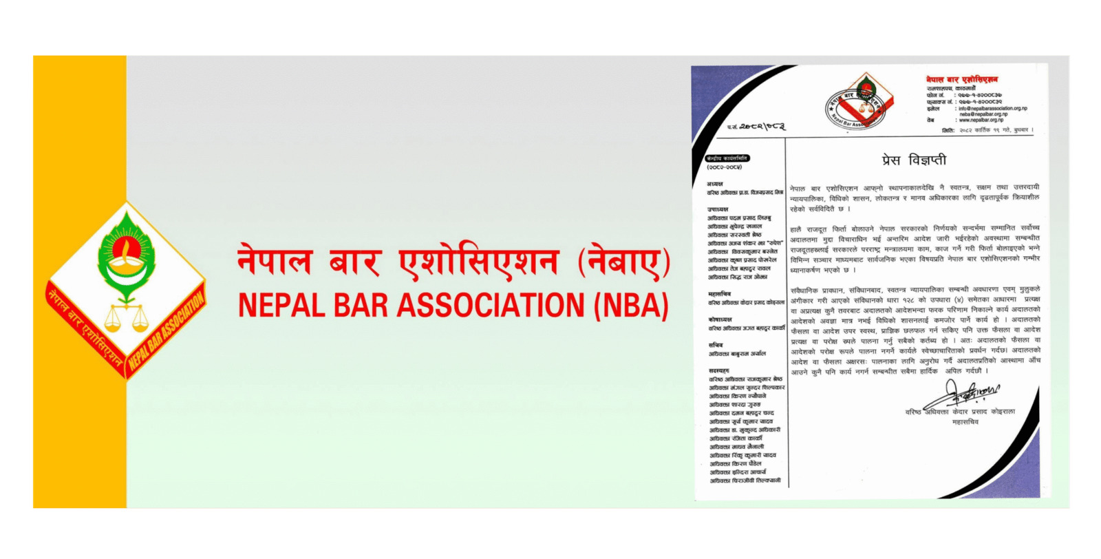 २०८२ कात्तिक २१ नेपाल । ´नेपाल बार एशोसिएशन आफ्नो स्थापनाकालदेखि नै स्वतन्त्र, सक्षम तथा उत्तरदायी न्यायपालिका, विधिको शासन, लोकतन्त्र र मानव अधिकारका लागि दृढतापूर्वक क्रियाशील रहेको सर्वविदितै छ` ।