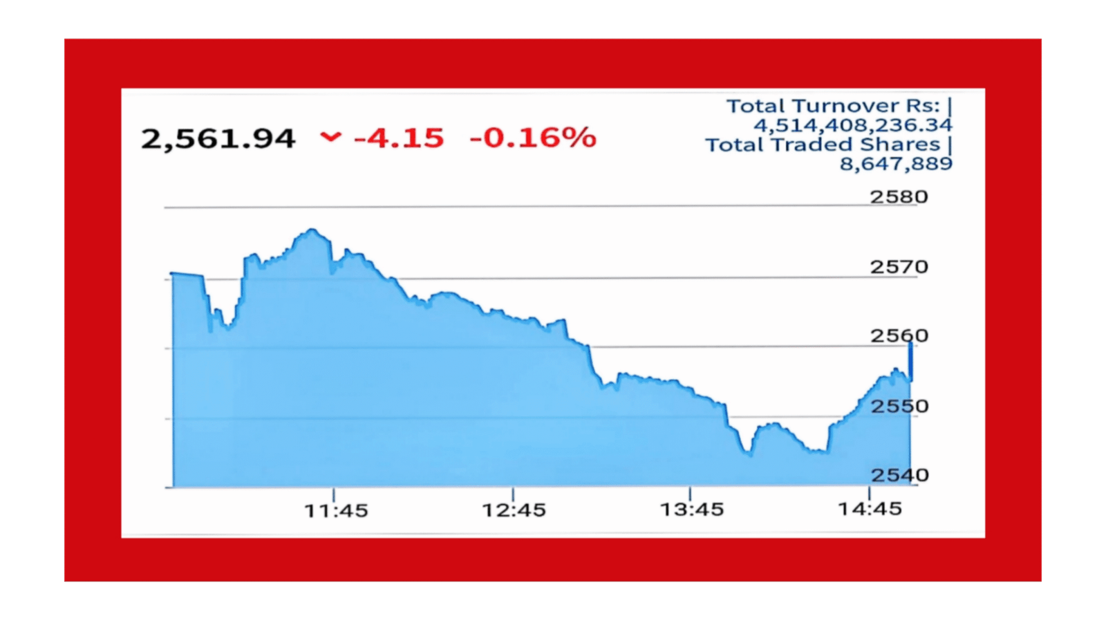 २०८२ कात्तिक २४ नेपाल । आज सेयर बजार नेप्से ४.१४ अंक अर्थात ०.१६ प्रतिशतले घटेर २५६०.२९ विन्दुमा कायम भएको छ। सेयर किनबेच चार अर्व माथी भएको छ।
