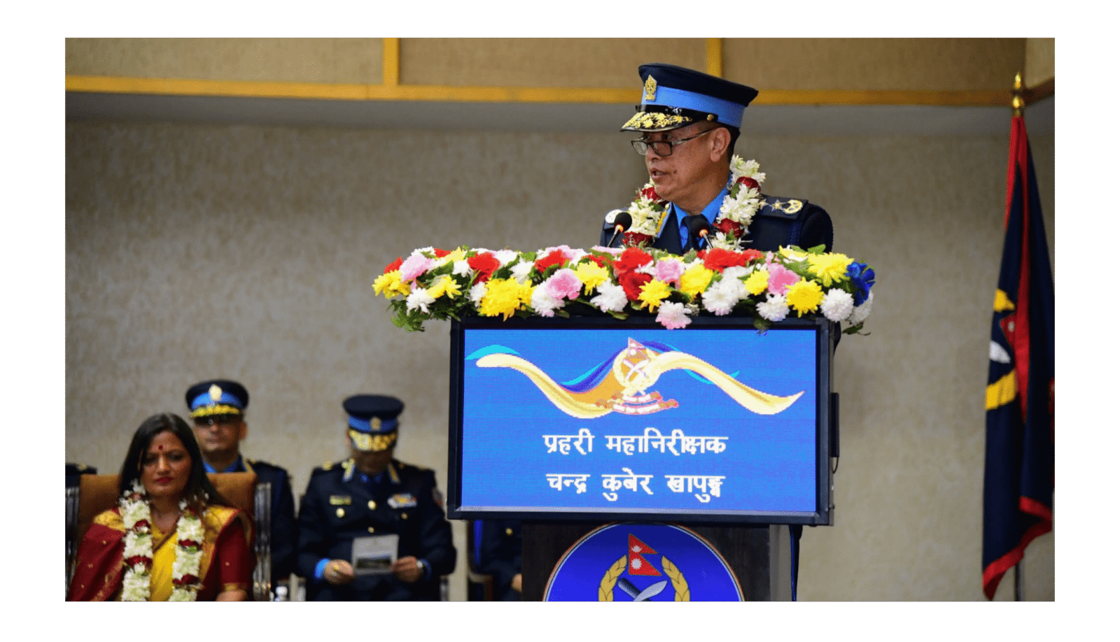 प्रहरी महानिरीक्षक चन्द्र कुबेर खापुङ्गले नवनियुक्त प्रहरी महानिरीक्षकलाई बधाई तथा सफल कार्यकालको शुभकामना व्यक्त गर्दै नवनियुक्त प्रहरी महानिरीक्षक व्यावसायिक, कर्तव्यनिष्ठ र दुरदर्शी व्यक्तित्व रहेको चर्चा गर्नुका साथै आफ्नो कार्यकालमा उहाँले संगठनलाई थप नयाँ उचाई दिने विश्वास व्यक्त गर्नुभयो । संगठनको श्रीवृद्धिका लागि नवनियुक्त प्रहरी महानिरीक्षकलाई सबै प्रहरी कर्मचारीहरूबाट रचनात्मक सहयोग हुने विश्वास समेत उहाँले व्यक्त गर्नुभयो । प्रहरी महानिरीक्षक खापुङ्गले आफ्नो नेतृत्व कालमा सहयोग पुर्याउने सम्पूर्ण प्रहरी अधिकृत तथा जवानहरू प्रति आभार समेत प्रकट गर्नुभयो ।
