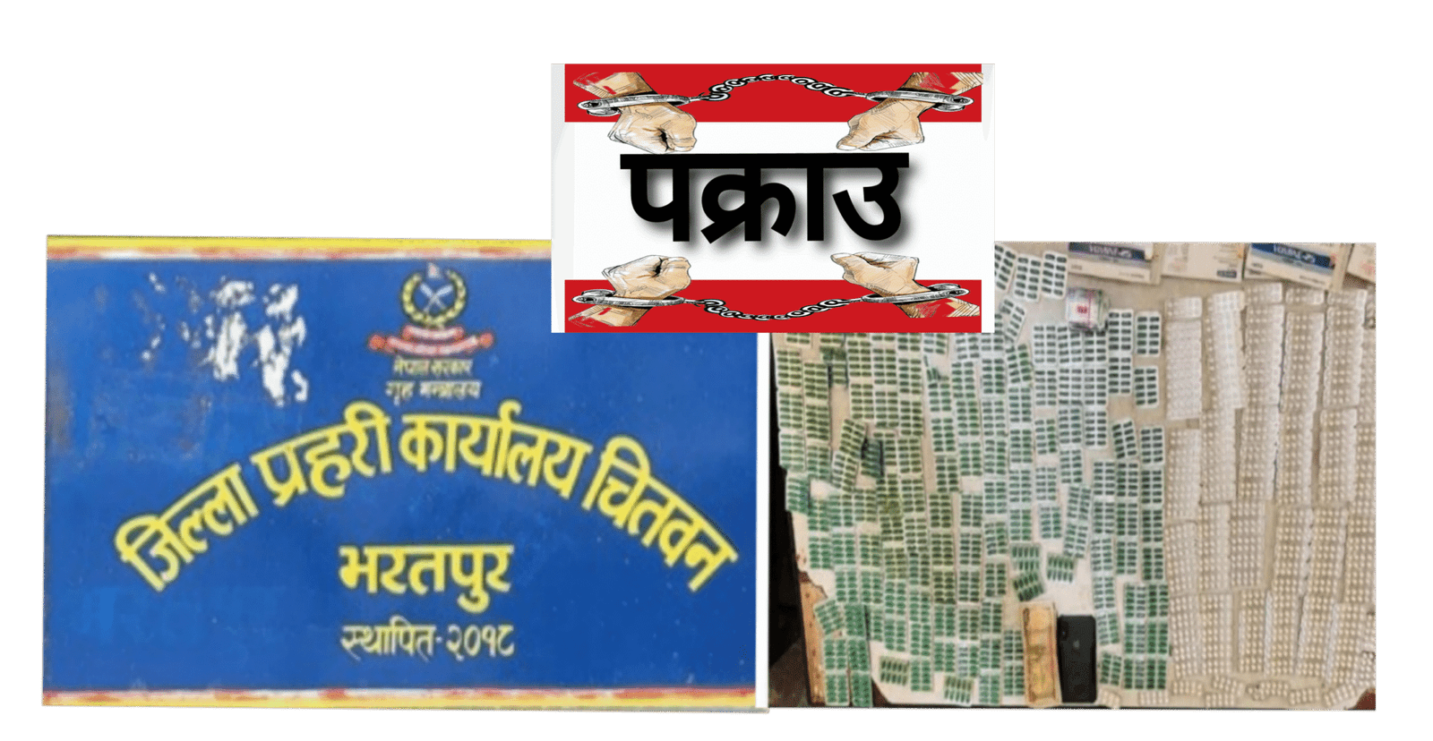 कात्तिक २८ नेपाल । मिति २०८२।०७।२६ गते अन्दाजी १७:३० बजेको समयमा जिल्ला चितवन भरतपुर महानगरपालिका वडा नं. १६ शरणपुर नविनचोक नजिक एकान्त कुना स्थितमा प्रतिबन्धित लागु औषध बिक्रि बितरण ओसारपसार तथा सेवन कार्य समेत गरि रहेका छन् भन्ने विशेष सुचनाको आधारमा अस्थाई प्रहरी पोष्ट शरणपुरबाट खटिएको प्रहरी टोलीले जिल्ला चितवन भरतपुर महानगरपालिका वडा नं. १६ बस्ने वर्ष २४ को सागर गुरुङ, जिल्ला चितवन भरतपुर महानगरपालिका वडा नं. १६ बस्ने वर्ष २० को बिमल कुमाल र जिल्ला चितवन भरतपुर महानगरपालिका वडा नं.१६ बस्ने वर्ष २३ को सुदिप श्रेष्ठलाई नियन्त्रणमा लिई चेकजाँच गर्दा निजहरुको साथबाट औषध ट्रामाजोल जम्मा १५० पत्तामा १५०० ट्याब्लेट र बोमिन २५ लेखिएको १४४ पत्तामा १४४५ ट्याब्लेट र नगद रु. २३,०९५/- (तेइस हजार पन्चान्बे रुपैंया) फेला फेलापारी निजहरुलाई नियन्त्रणमा लिई लागू औषध सम्बन्धी कसूरमा सम्मानित चितवन जिल्ला अदालतबाट दिन ७ (सात) म्याद थप गरी अनुसन्धान गरिरहेको जिल्ला प्रहरी कार्यालय चितवनले प्रेस बिज्ञप्ति जारी गरेर जनाएको छ।