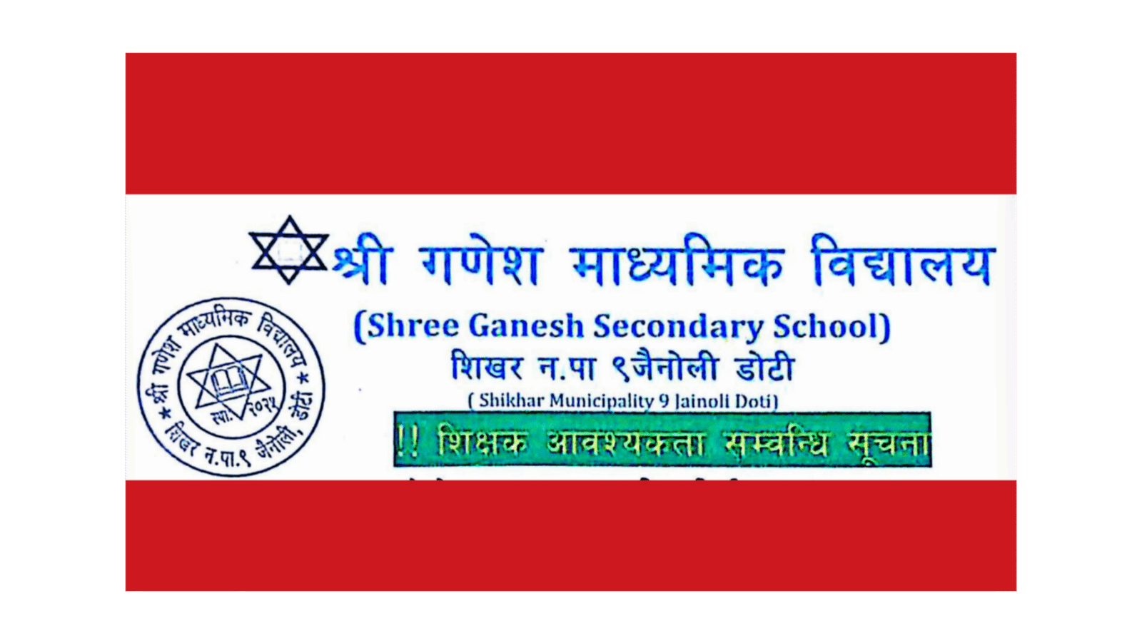 मंसिर १ नेपाली । डोटीमा रहेको श्री गणेश माध्यमिक विद्यालयको विद्यालय व्यवस्थापन समितिको २०८२ कात्तिक ३० गते बसेको बैठकको निर्णय अनुसार विद्यालयमा मा. वि. तह विज्ञान विषयको संघीय शिक्षण सिकाइ अनुदान शिक्षक १ जना आवश्यक भएकोले शैक्षिक योग्यता वि.एस्सी वा सो सरह पास गरेको, उमेरः १८ वर्ष पुरा भइ ४० वर्ष ननाघेको नेपालीहरुवाट मिति २०८२ मंसिर ६ गते भित्र दरखास्त पेश गर्नहुन बिद्यालयले सुचना प्रकासित गरेको छ ।