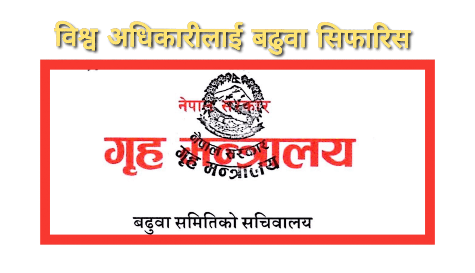मंसिर २ नेपाल । जनपद प्रहरी समूहतर्फ प्रहरी नायव महानिरीक्षक पद संख्या १ मा बढुवा गर्न २०८२ मंसिर १ गते बसेको बढुवा समितिको बैठकको निर्णय अनुसार जनपद प्रहरी समूहतर्फका प्रहरी वरिष्ठ उपरीक्षक विश्व अधिकारीलाई सोही समूहतर्फको प्रहरी नायव महानिरीक्षक पदमा बढुवाका लागि गरिएको सिफारिस सूची प्रहरी नियमावली, २०७१ (संशोधन सहित) को नियम २७ को उप-नियम (४) अनुसार सम्बन्धित सबैको जानकारीका लागि बढुवा समितिको सचिवालयले सूचना प्रकाशित गरेको छ ।