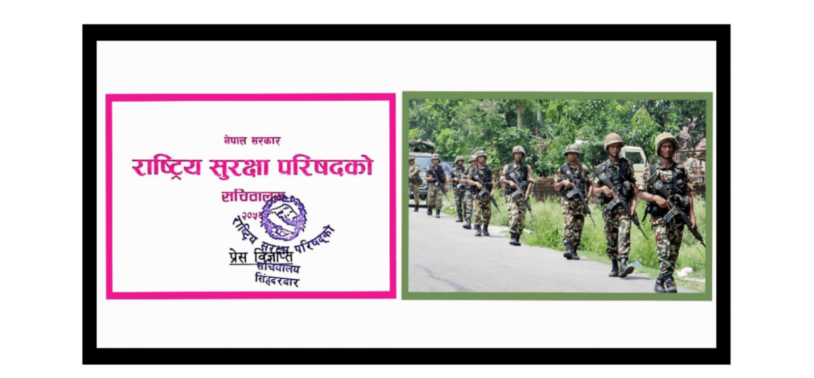 मंसिर ४ नेपाल । सिंहदरबार स्थित राष्ट्रिय सुरक्षा परिषद्को सचिवालयमा प्रधानमन्त्री एवम् राष्ट्रिय सुरक्षा परिषद्का अध्यक्ष सुशीला कार्कीज्यूको अध्यक्षतामा अर्थमन्त्रीज, गृहमन्त्री, मुख्य सचिव, प्रधान सेनापति र रक्षासचिवको उपस्थितिमा राष्ट्रिय सुरक्षा परिषद्को ४१ औं बैठक हिजो मंसिर ४ गते सम्पन्न भएको छ।
