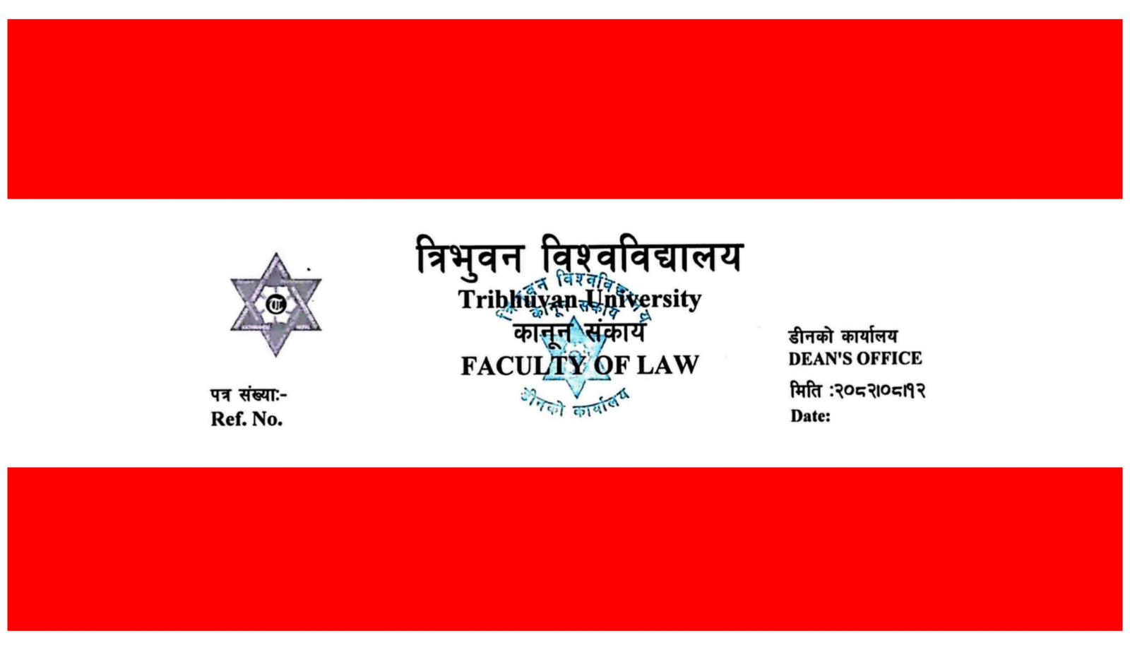 मंसिर १३ नेपाल । परीक्षा संचालन समितिको मिति २०८२ मंसिर १२ गतेको निर्णयानुसार त्रिभुवन विश्वविद्यालय कानून संकाय, डीनको कार्यालय काठमाडौंद्वारा २०८२ सालमा लिइने स्नातक तह बि.ए. एलएल. बी. पाँचौ सिमेष्टरको सिमेष्टर सत्रान्त परीक्षा सञ्चालन गर्ने सम्बन्धमा परीक्षा फाराम भर्नको लागि सम्बन्धित क्याम्पस कलेजमा सम्पर्क गर्न विद्यार्थीहरुलाई त्रिभुवन बिश्व बिद्यालय परिक्षा नियन्त्रण कार्यलयले सूचना जारी गरेको छ।