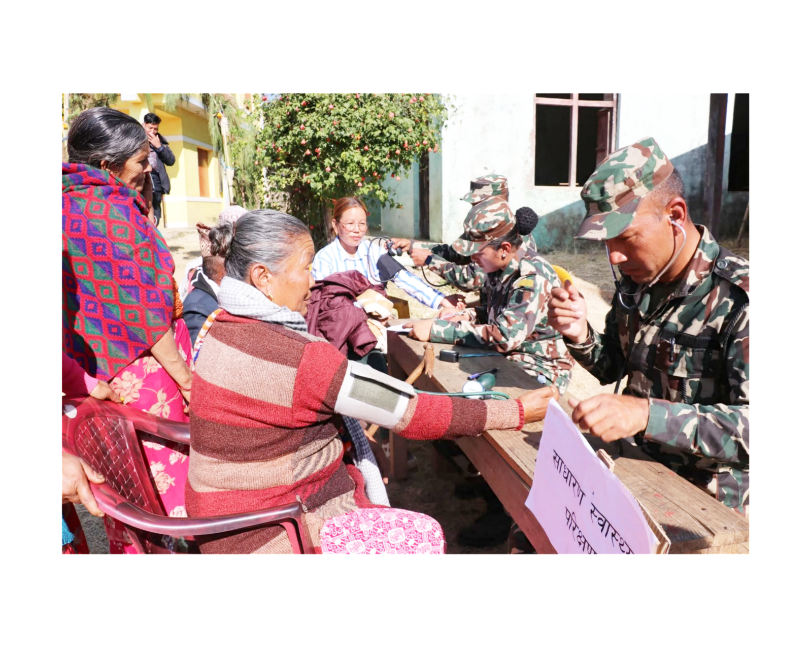 नयाँ श्रीनाथ गण, सैनिक अस्पताल ईटहरी, नं. २ फिल्ड एम्बुलेन्स गुल्म हिले, जिल्ला जनस्वास्थ्य कार्यालय, जिल्ला अस्पताल, टेम्केमैयुम गाउँपालिका, जिल्ला आयुर्वेद अस्पताल र सिद्धकाली फार्मेसीको सहकार्यमा टेम्केमैयुङ गाउँपालिका वडा नं. ७, भोजपुरमा मंसिर २० गते सञ्चालित निःशुल्क स्वास्थ्य शिविरबाट ४४३ जना स्थानीय लाभान्वित भएका नेपाली सेना श्रोतले जनाएको छ।