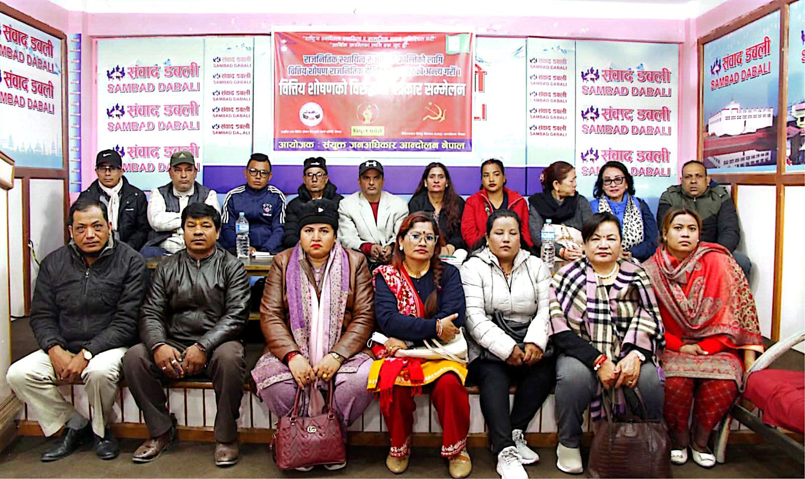 हामी बिगत ४ बर्षदेखि निरन्तर संघर्षरत पक्ष लघुवित्त तथा वित्तीय शोषण विरुद्धको संर्घष समिति नेपाल र मिटरब्याज विरूद्ध किसान मजदुर आन्दोलन र यी दुबै आन्दोलनका भगेनी संगठनहरू बिच गत कार्तिक २ गते संयुक्त जनअधिकार आन्दोलन नेपालको नाममा एकता भईसकेका छौं । यस अवधिमा हाम्रो दुबै आन्दोलनका भूमी अधिकार आन्दोलनसहित भगिनी संगठनहरूमध्ये राष्ट्रिय स्वयम् सेवक नेपाल र श्रमिक फोर्स बिच एकता भेला समेत गत मंसिर ४ गते अध्यक्ष निर्ग नवीन जैसी र सेक्रेटरीमा सजिव सिंह रहने गरि पिपुल्स फोर्स समेत गठन गरिसकेको कुरा सर्वत्र जानकारी गराउँदछौँ । हामी दुवै पक्ष कहिले एकल त कहिले संयुक्तरूपमा कार्यक्रम गर्दै आईरहेका थियौं । दुवै पक्षबिच राज्यले पटक पटक बार्ता मार्फत ऐन, कानुन, नियमावली तथा प्रतिवेदनहरू बनिसक्दा पनि पीडितहरूले न्याय नपाईरहेकै कारण हाम्रो समाज वित्तीय शोषणको चरम चङ्गुलमा फसिरहेको छ त्यसैले यस्तो शोषणको विरुद्धमा हामी एकजुट हुनुको बिकल्प रहेन । आज लघुवित्त, बैंक, मिटर व्याजी, सहकारी र ईन्सोरेन्सहरूले समेत हामी नेपाली जनतालाई कैयौं सुविधा र सपना नामका अत्यचारले समाजमा सीमा नाघि सकेको र हालै गरिमा विकास बैंक, सर्लाही र ज्योती विकास बैंक, सप्तरीका घटनाले पुष्टि गरेको छ उक्त घटनाका पिडीतलाई तुरुन्त न्याय दिन अनुरोध गर्दै एउटै मञ्चबाट समग्र वित्तीय शोषणको विरुद्धमा संघर्ष बाहेक बिकल्प नरहेकाले हामी तपसिलको मिति समय र स्थानमा आन्दोलनको घोषणा गर्दै छौं । सम्पूर्ण वित्तीय उत्पीडनका विरुद्धमा संघर्षरत समूह वा उत्पीडनमा पर्नुभएका जनसमुदायहरूमा यसै जनअधिकार आन्दोलन नेपालमा संगठित भई राजनितीक स्थायित्व र आर्थिक क्रान्तिको लागि, वित्तीय शोषण, राजनीतिक बेथिति र भ्रष्टाचारको अन्त्यको लागि एकजुट हुन अनुरोध गर्दै सम्पूर्ण नेपाली जनसमुदाय हरूलाई उक्त आन्दोलनमा सहयोग, समर्थन र सहभागीताको लागि हार्दिक अनुरोध गर्दछौं।