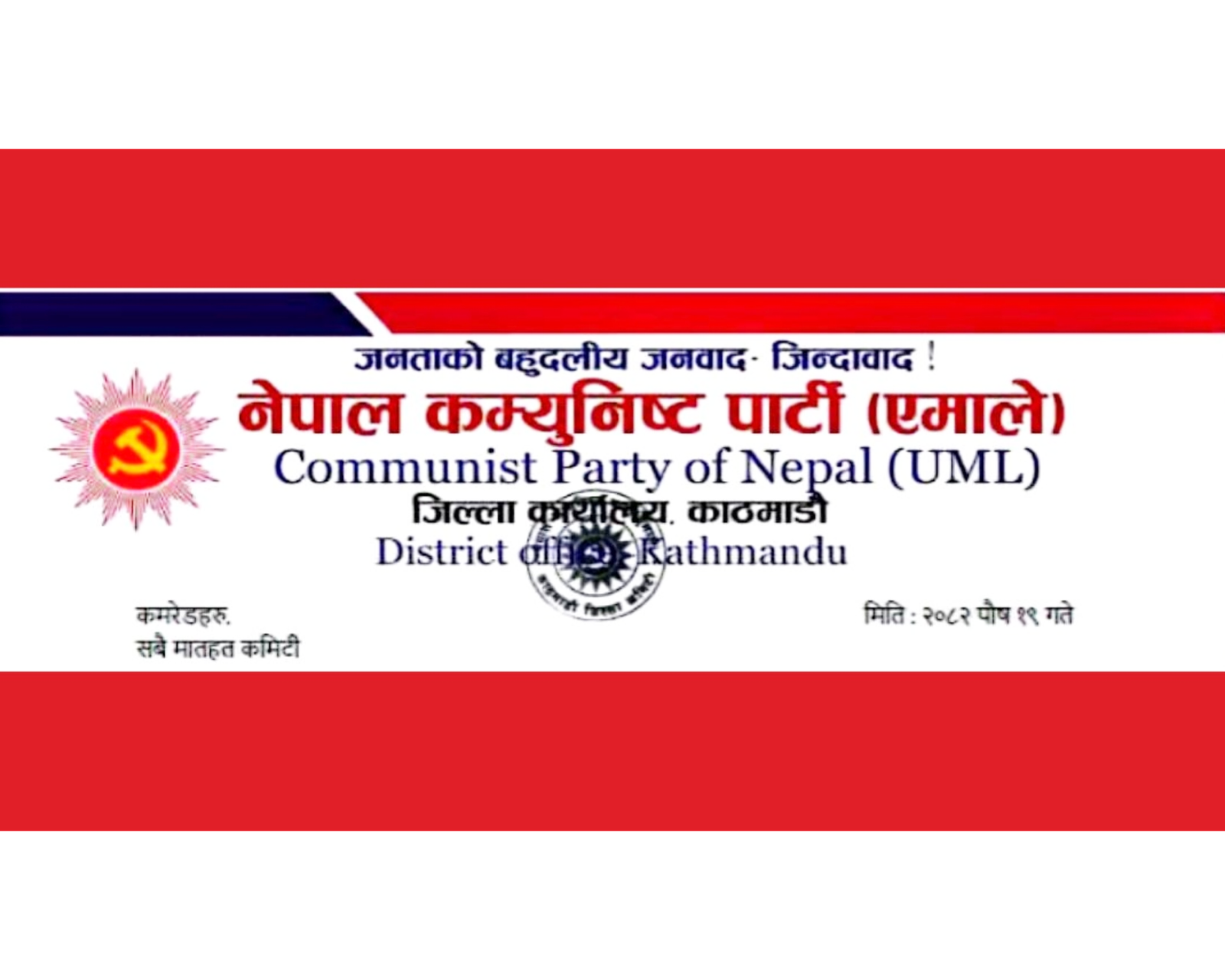 मिति २०८२ पौष १८ गते नेकपा (एमाले) काठमाडौँ जिल्ला कमिटीको नवौं बैठक सम्पन्न भएको छ । प्रतिगमनका विरूद्ध प्रतिनिधिसभा पुनर्स्थापनाका पक्षमा दृढ़ रहँदै आवश्यकता अनुरूप कानूनी लगायत सङ्घर्षका विविध स्वरूप अवलम्बन गर्ने र पार्टीले संचालन गर्दै आएको सङ्घर्ष र जनदवावका कारणले फाल्गुन २१ मा गर्ने भनिएको निर्वाचनको वातावरण तयार भएमा उक्त निर्वाचनमा सहभागी हुने नीतिअनुरूप निर्वाचनको आन्तरिक तयारीको कामलाई समेत प्रतिगमन विरूद्धको आन्दोलनका रूपमा अधि बढ़ाउने केन्द्रीय सचिवालयको निर्णय अनुरुप काठमाडौँ जिल्लाको नवौं बैठकले प्रतिनिधिसभा निर्वाचन क्षेत्र समन्वय कमिटीहरुको विस्तारित भेला, सम्भावित उमेदवारको नाम सिफारिस गर्न कार्यक्रमको मिति स्थान तय गरेको छ।